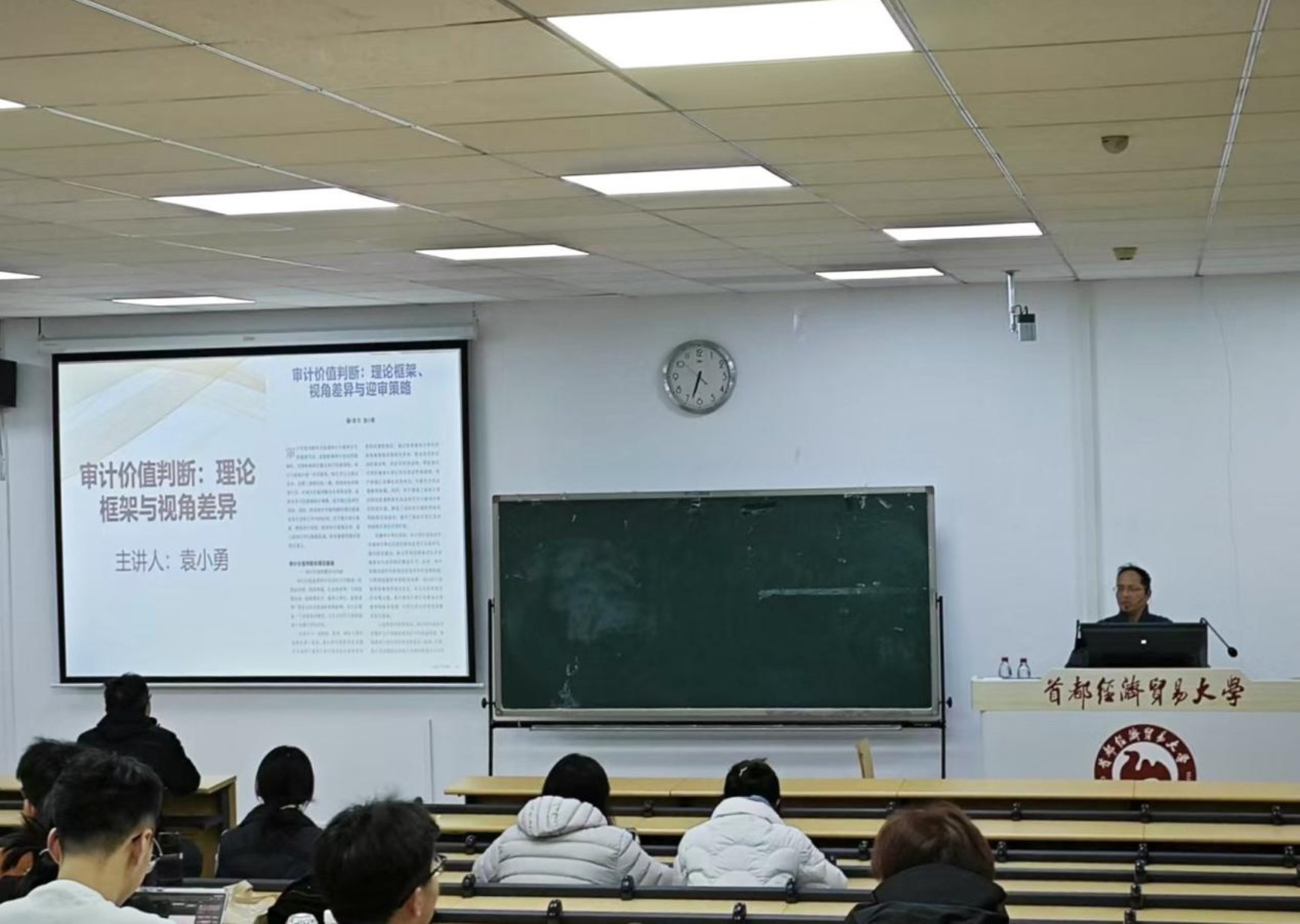 为了帮助同学们深入了解审计工作的价值逻辑,拓宽课堂知识之外的专业视野,11月18日,会计学院邀请退休教师袁小勇副教授开展了题为“审计价值判断差异与协调”的主题讲座,活动由审计专业学位中心副主任武迪主持;2025级研究生参加了本次讲座。