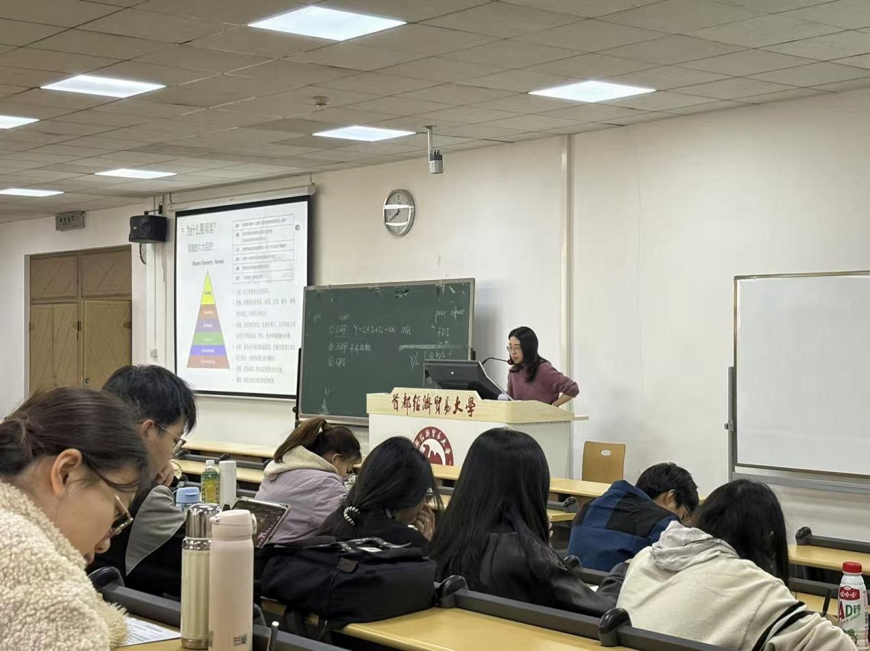 在文献检索环节,杨玉晨围绕“精准高效获取资源”展开详细讲解。她系统介绍了CNKI、Web of Science等中外核心数据库的使用技巧,包括高级检索、主题筛选、文献追踪等实用功能,同时补充了行业公众号、学术论坛等资源渠道,帮助同学们拓宽文献获取视野。针对会计学科的特殊性,她还分享了期刊等级甄别方法,指导同学们快速筛选高质量文献,避免无效阅读。