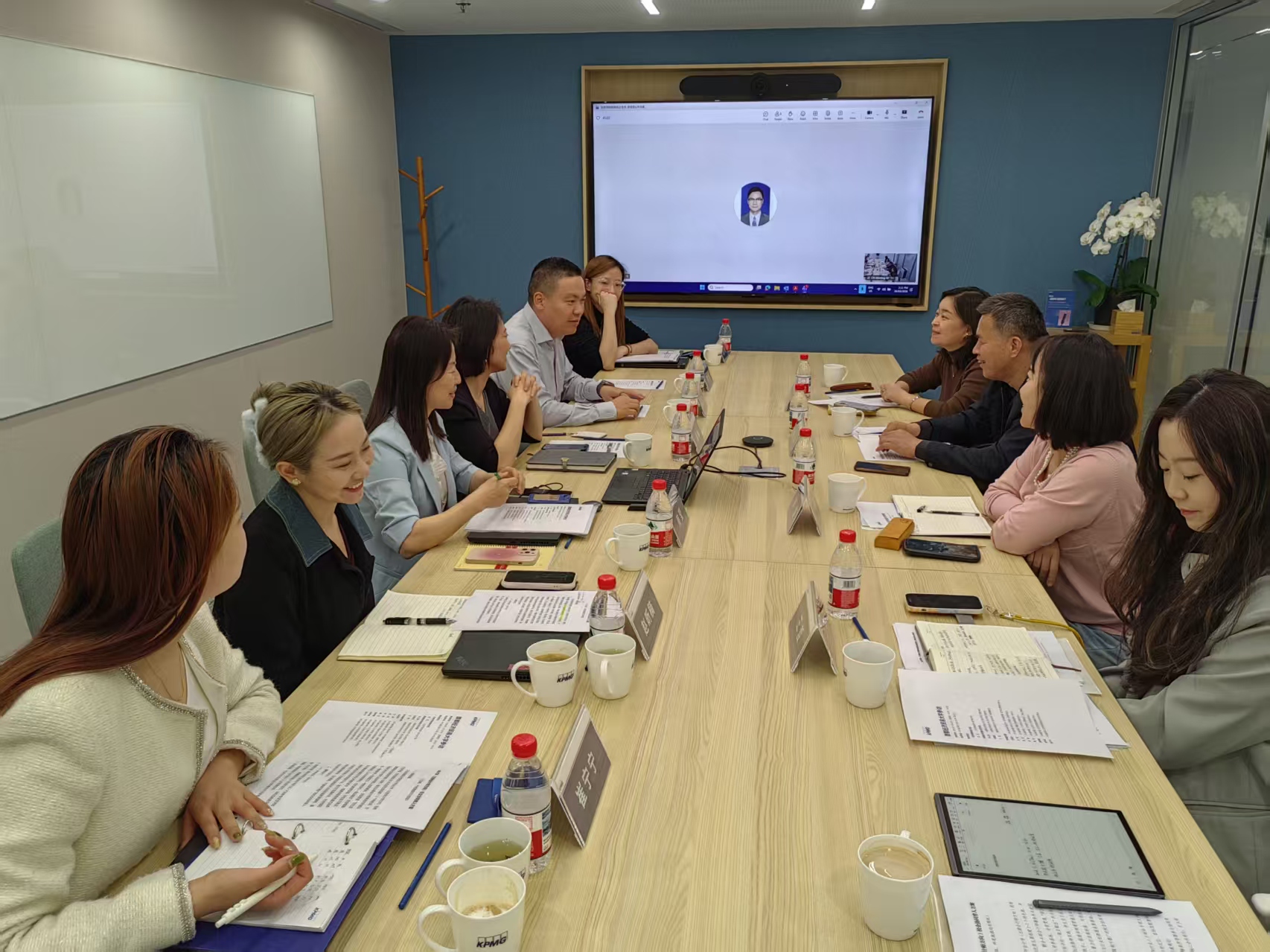 学院向毕马威方面介绍了办学特色以及人才培养成效。许江波对市财政局会计处和毕马威华振会计师事务所的大力支持表示衷心的感谢。他表示,学院始终坚持服务首都“四个中心”建设,以产教融合赋能人才培养,着力推动学生理论学习与专业实践深度融合。赵懿清介绍了学院专业设置及人才培养总体情况,并提到学院结合会计师事务所忙季动态优化培养方案,为学生预留充足实习实践时间,切实提升学生实践应用能力。王哲就我院学生实习与就业相关情况作了介绍。