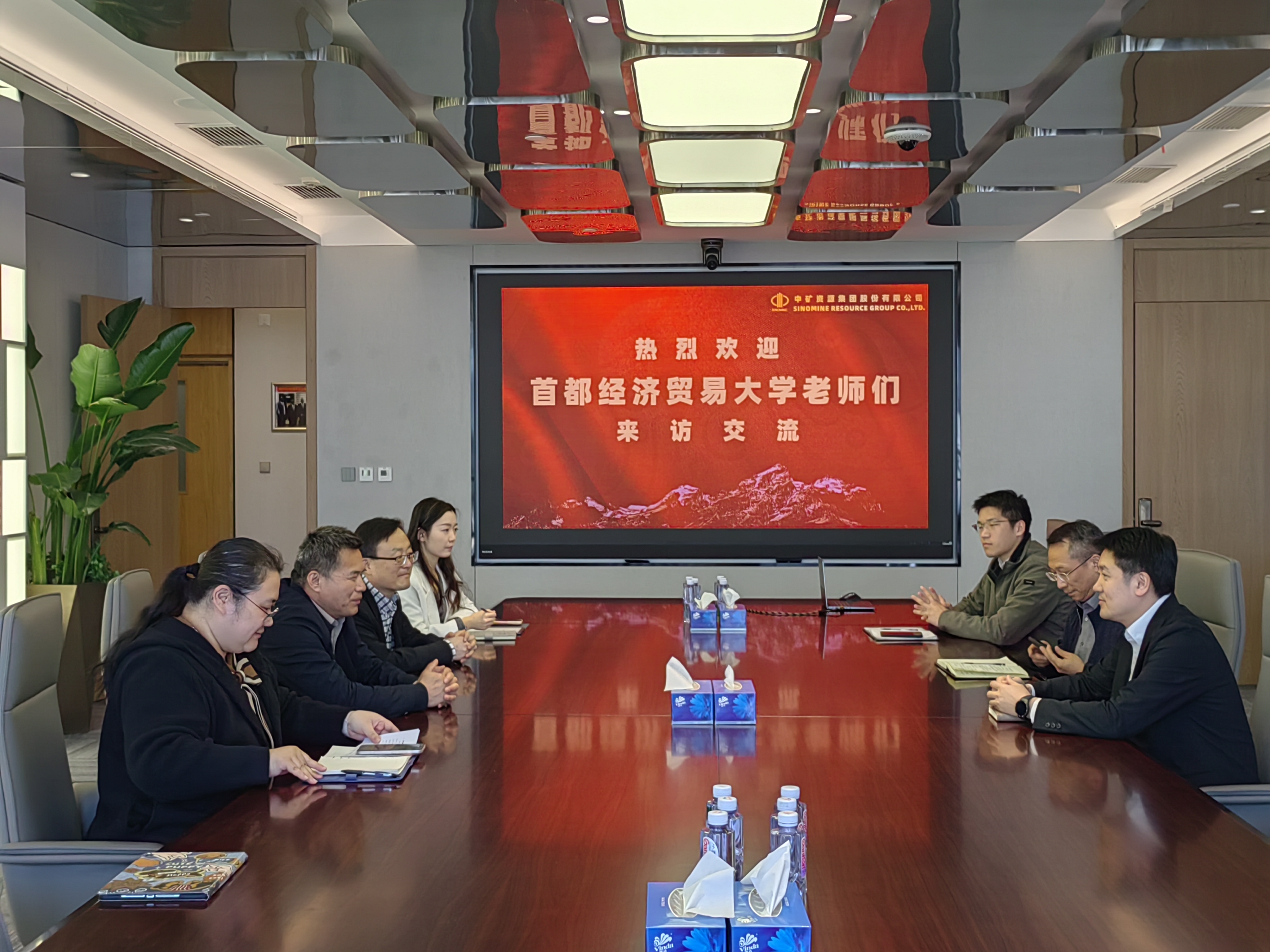 3月19日下午,首都经济贸易大学会计学院党委书记许江波、党委副书记、院长于鹏、党委副书记谭静以及辅导员王哲、卢炯名一行前往中矿资源集团股份有限公司开展访企拓岗专项活动。中矿资源集团股份有限公司财务总监姜延龙、人力资源总监林继红、人力资源主管李昂热情接待,双方展开深入交流。