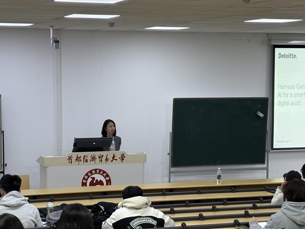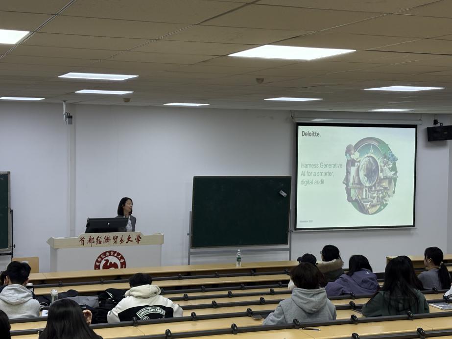 为进一步帮助学生了解数字化审计未来的发展趋势,并为将来职场中的审计工作做好准备,11月4日,会计学院邀请德勤华永会计师事务所合伙人董欣担任主讲嘉宾,讲座以“Harness Generative AI for a smarter, digital audit”为主题,会计学院2025级硕士研究生参加了本次讲座。